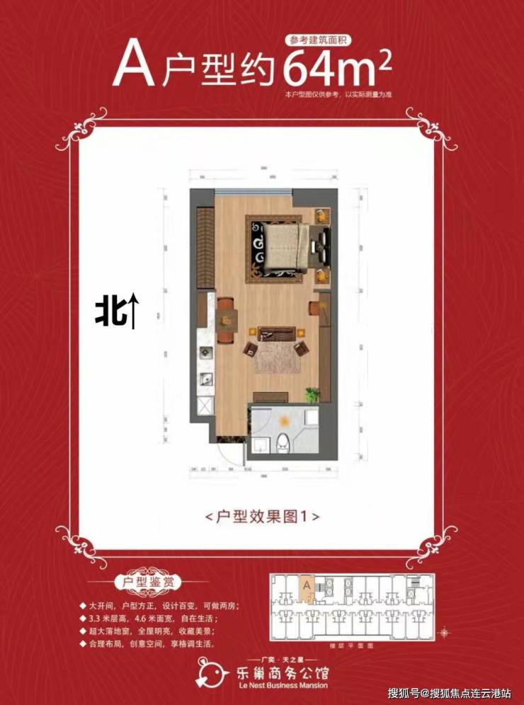 【在售面积】50㎡56㎡64㎡(一室一厅一卫)