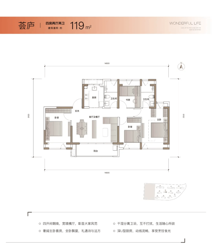 约119㎡四房两厅两卫:适合多口之家或改善需求