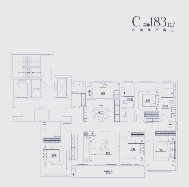 主推户型:均为精装大平层,含130㎡(3房2厅2卫)、155㎡(4房2厅2卫)、183㎡(4房2厅3卫)