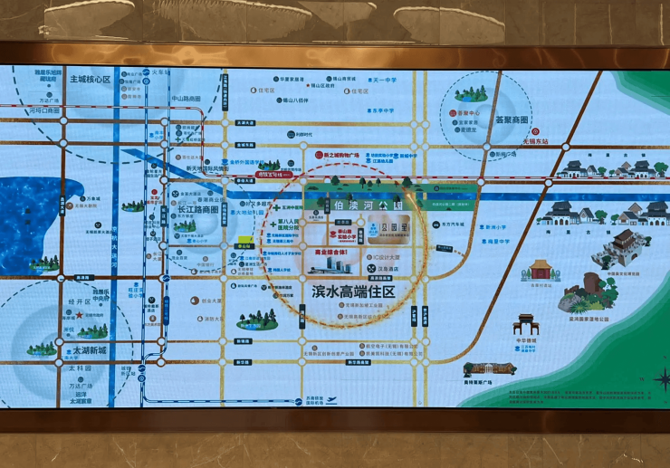 自驾网络:泰山路、泰伯大道、高浪路高架等主干道环绕,10分钟达高铁站,15分钟至苏南硕放机场。