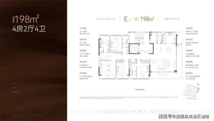 建面约198㎡户型4房4卫,