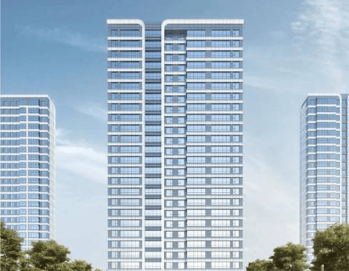 建筑特点:10栋25-26层高层,纯人车分流设计,外立面采用干挂石材、铝板及玻璃幕墙