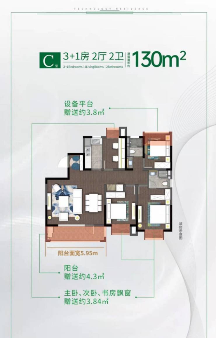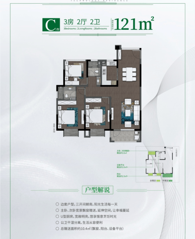 户型设计:主力户型96-145㎡三至四居,部分精装大平层带观景飘窗和双卫