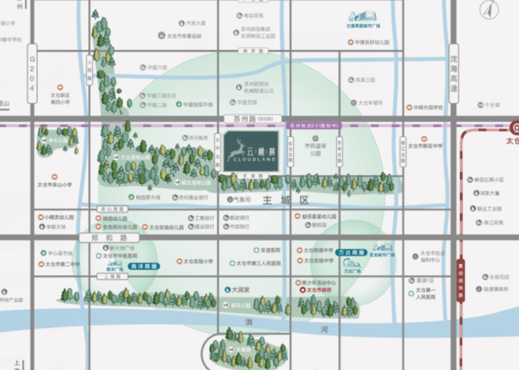 交通路网:紧邻天津路、太平北路、苏州路三条主干道,可快速接驳沪宜、沈海高速。未来将受益于苏锡常城际铁路娄东站(在建)与苏州市域 S2 线,实现与上海、苏州的轨交互联。