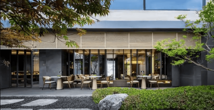 赋系文化底蕴 :以江南园林礼序为灵感,打造“山、曲、水”园林意境,铝板+玻璃幕墙立面,颜值与品质兼具。