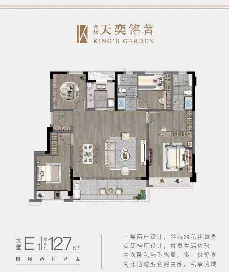 得房率:小高层77%洋房80%以上,叠墅 高层两梯四户,洋房一梯两户