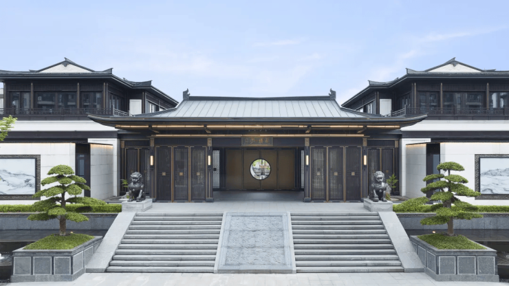 宋风美学:以歇山顶、直棂窗、飞檐戗角等传统元素为核心,搭配青砖黛瓦与铜制门环,复刻南宋雅韵。