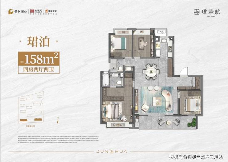 158㎡四居户型位于 1 号楼、3 号楼,同样 2 梯 2 户,层高 3 米,总楼层 15 - 17F。该户型功能分区合理,空间利用率高,宽敞的餐厅与厨房相连,方便家庭聚餐与烹饪;次卧空间灵活,可根据需求改造成书房、儿童房等,适应不同生活场景。