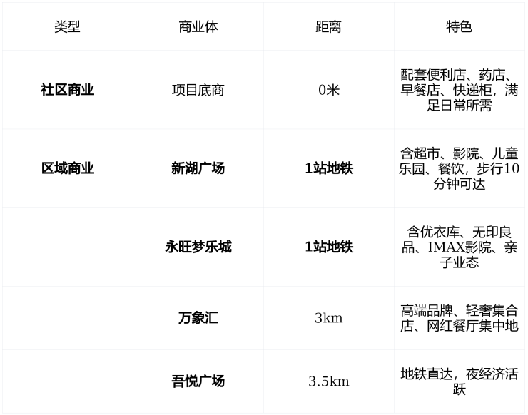 🌟 独家亮点 :项目周边 无自持商业体 ,但 地铁1站直达两大主力商业体 ,通勤+购物无缝衔接, 不靠配套自持,靠交通效率取胜 。