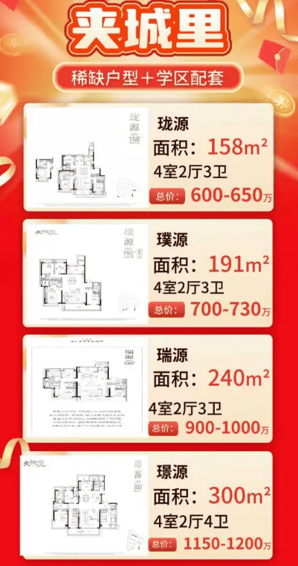 158㎡ 600 – 640 3.8万 – 4.0万 三房两厅,主卧套房,适合三代同堂