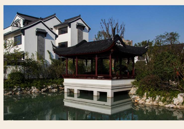 园林设计以苏州古典园林为蓝本,打造"金水河"景观带