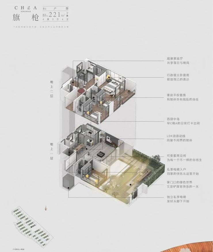 上叠:南北双露台,独立入户庭院,星空露台瞰景
