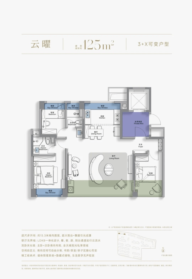 小区自带配套:约2000㎡的超大规模双下沉庭院艺术会所;