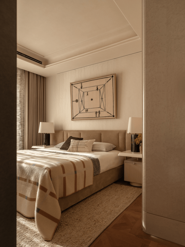 窗边的单人椅与床尾的凳榻,等待着一次阅读、一段眺望或一场无目的的小憩。