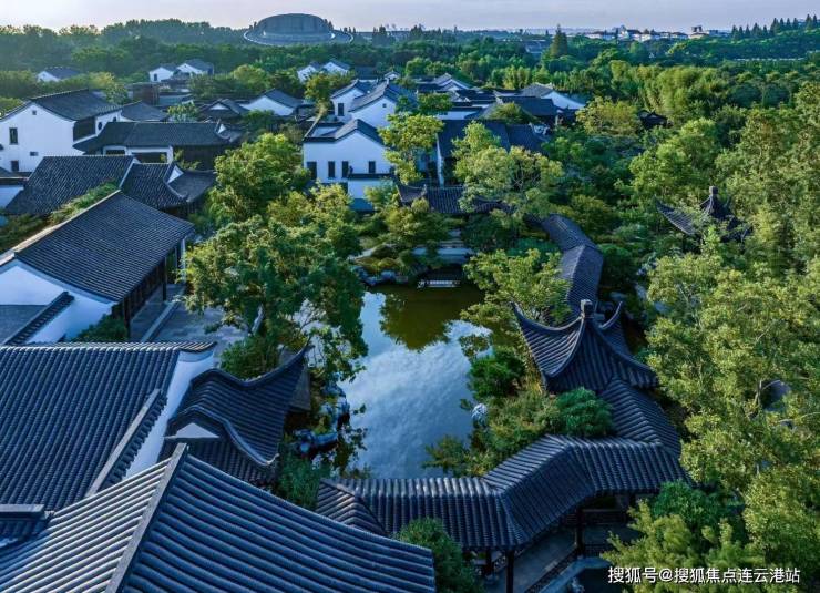 复刻明清“四水归堂”形制,白墙黛瓦木纹格栅立面,由苏州园林设计院执笔庭院景观
