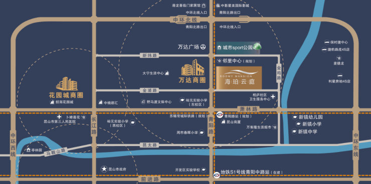 主干道与快速路 :紧邻青阳北路(双向六车道改造完成),出门数百米即达中环北线入口,15min直达昆山核心商圈,自驾出行高效便捷。