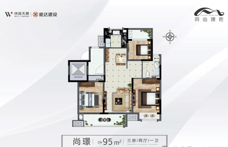 95㎡三房一卫:总价约152万起,单价约16000元/㎡