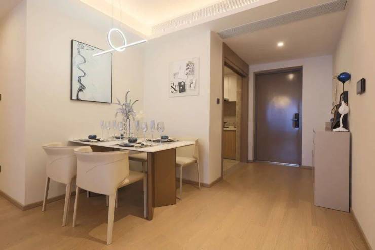 玄关是中国传统文化礼仪于住宅文化上的一个生动写照,讲究含蓄内敛,有一种“藏”的精神。云悦天境,独立玄关设计,有效保护隐私的同时, 入户可安排多功能玄关柜,质变收纳,充分利用空间;且入户门外开设计,亦有效节约空间。
