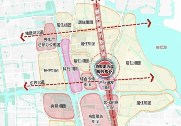 主干道:紧邻东环高架(北通苏州站/高铁北站,南达吴江)、金鸡湖大道、娄江快速路等城市动脉