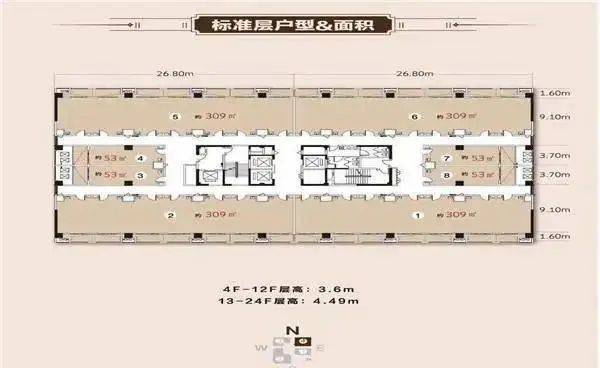 4号楼商务楼 :约53、309、617㎡(层高4.49米)均价:1.2-1.4万