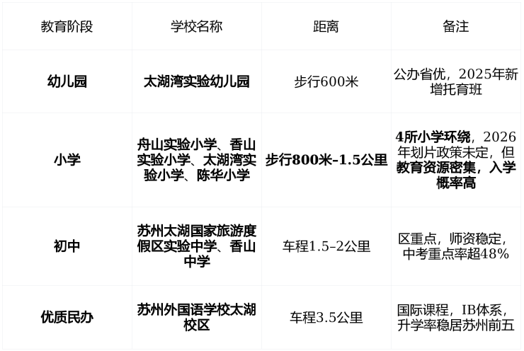 项目 未明确划片 ,但 3公里内4所小学+2所中学教育资源密度为吴中城南最高之一家长可多校摇号,入学选择灵活