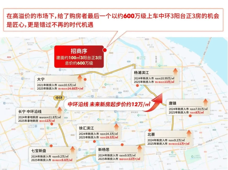 整体均价 : 约68,238元/㎡ , 为宝山淞南板块内唯一“地铁口+双央企+4000㎡会所+高得房率”改善盘 , 价格低于杨浦新江湾城同面积产品约30%–40% ;