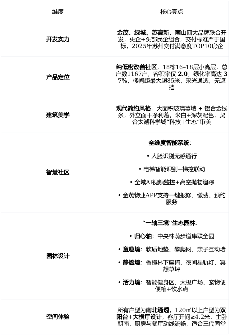 🌿 项目优势:四大品牌联袂打造,太湖科学城芯低密改善标杆