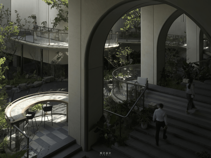 拱阙廊桥的孔洞设计,取法苏州太湖石 “多孔透景” 的意趣。孔洞从侧面蜿蜒至顶部,将点状雕塑化为流动的 “空间雕塑”。人行走其间,透过不同孔洞望去,景致随脚步流转而变幻,每一步都藏着 “移步换景” 的巧思与惊喜。