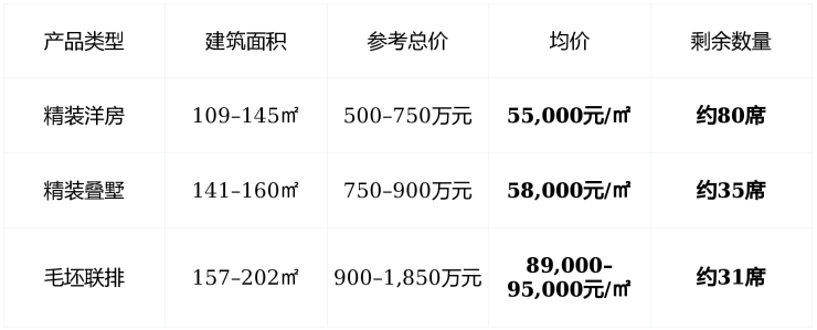 🏠 在售情况:109㎡起总价500万+,低密墅区最后146席,售罄在即