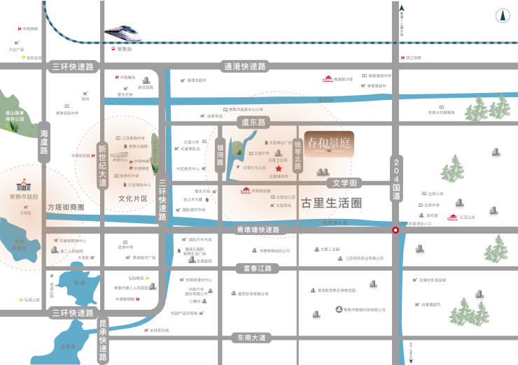 公园:毗邻古里文化公园、琴川城市公园,绿化率约35%,居住环境舒适