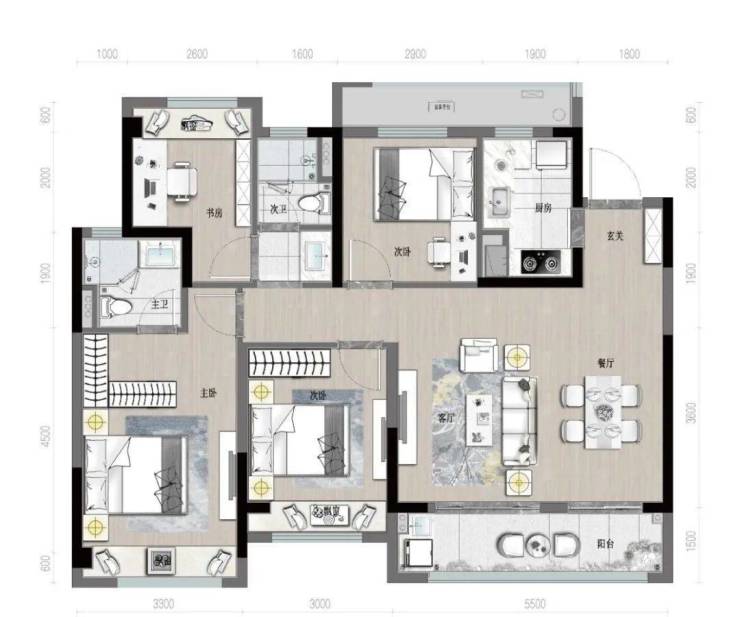 刚需小三房,户型方正、全明设计。双卧南向、客厅和次卧连接的6.2米宽阳台引景入室,空间通透。