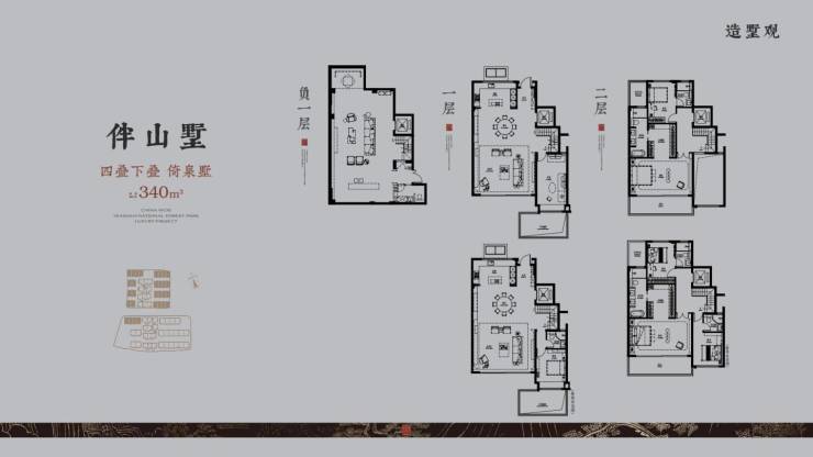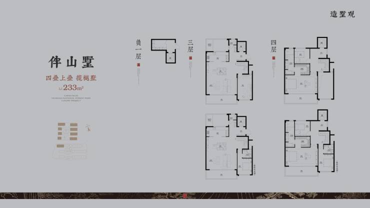 四叠别墅:建面约233-340㎡,毛坯均价约37200元/㎡,套均1100万元