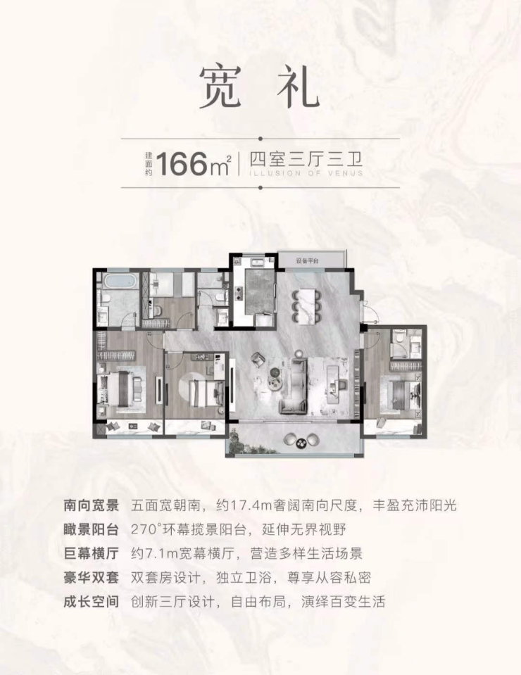 166㎡四室三厅两卫:1梯2户设计,总价区间约413-430万元