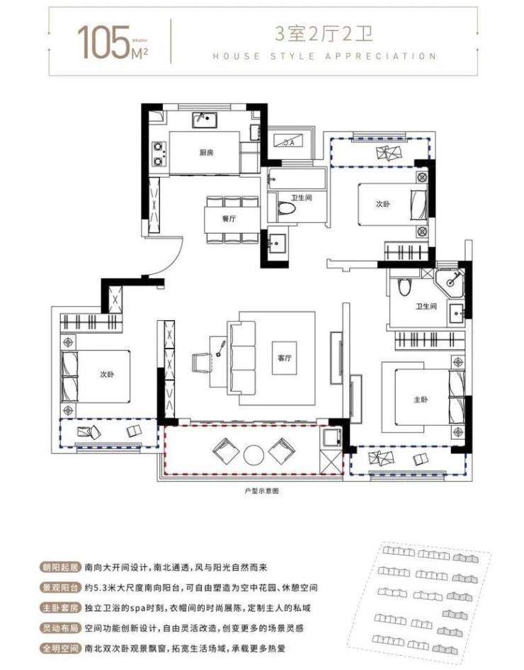 105㎡三居室:总价145-155万,空间布局合理,功能分区明确