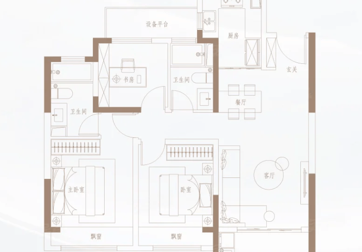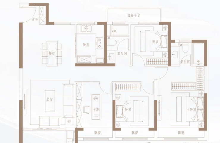不仅是墅居之上的圈层和景观奢享,泓悦府更沿袭墅级标准,打造建面约103-138㎡瞰景三房四房。建筑室内南向大面宽开间,最长达13.3米,南北通透,阳光清风满怀;主卧套房、U型厨房、精致餐客厅……通过宽绰空间与人性化的功能分区设置,重新定义品质生活。