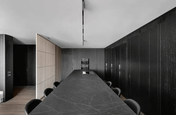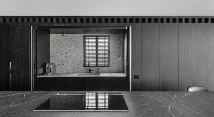 广宇锦上云澜售楼处电话:400 808 3612✔✔✔☎餐厅位于厨房旁边,巧妙地融入了疏密有致的自然纹理和极简外形,打造出简约而精致的用餐环境。中岛台与餐桌紧密相连,黑色的大理石上细腻的纹理为用餐空间增添了内敛而大气的气质。这样的设计为人们营造了一个舒适、优雅且充满现代感的用餐环境,让人在品尝美食的同时,也能感受到家的温馨与舒适。