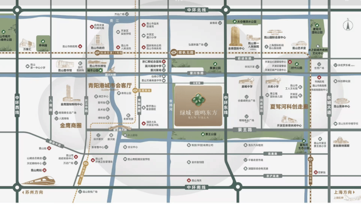 地理位置 :昆山市开发区 黄浦江路与景王路交汇处 ,属城东核心板块