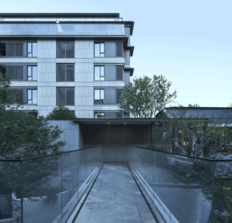 低密6层纯墅社区,大面积高透玻璃+蓝宝石立面石材+金属铝板外立面