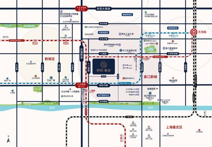 城际铁路:沪苏通铁路太仓站驾车约8公里,30分钟直达上海