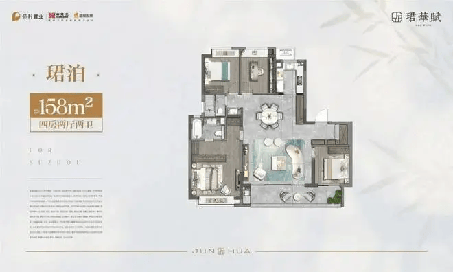 项目精装交付,配备中央空调、新风系统、地暖等高端配置。厨房采用西门子等品牌家电,赠送洗碗机、烤箱等;主卫采用智能马桶,提升生活质感。全屋通铺0.9米×1.8米岩板,公区践行“没有一片砖”的精装标准,凸显隐奢格调。