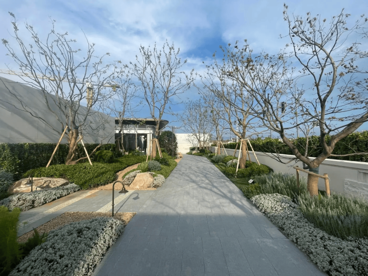 园林景观:社区内部规划有“一轴·双环·五园”立体园林体系,约800米环社区慢跑道串联羽毛球场、太极广场等全龄活动场地。