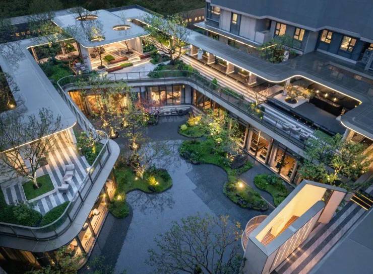 社区园林 :由 水石、观己 团队打造, 6000㎡会所+四重水系+全冠移植古树 ,一步一景,归家即入画