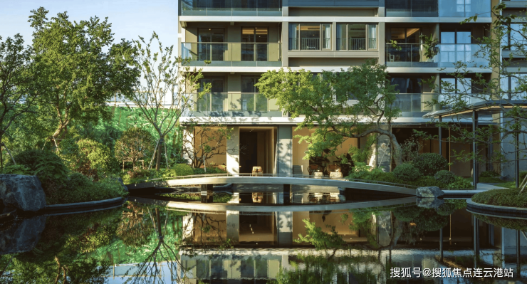 园林规划:采用围合式布局,配备630㎡水系景观、350㎡戏水池、风雨连廊及全龄架空层活动区,实现“无雨归家”动线