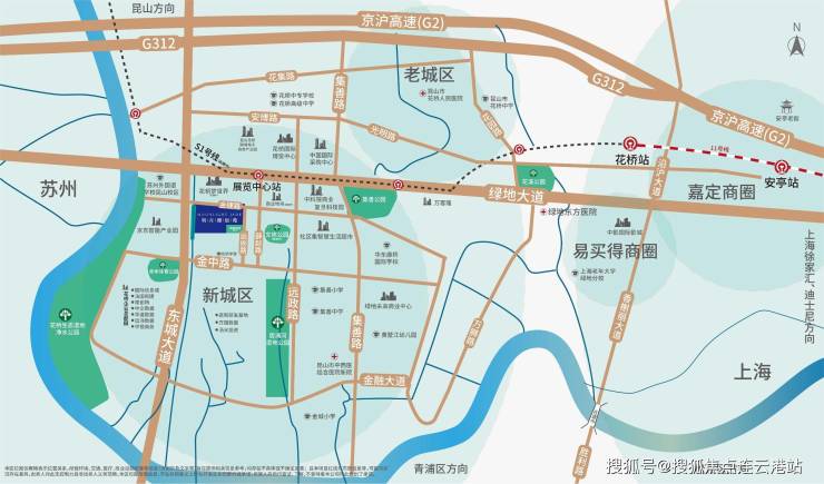 项目紧邻11号线展览中心站约600米,与上海地铁11号线在花桥站同站换乘;临近城市主干路(东城大道与绿地大道);多条公交线路可以直达花桥地铁站和花桥全区、昆山市区,绿色出行,方便老幼;轨交、高速、国道、城市主干道等立体交通网络覆盖,轻松畅达上海、昆山及苏州市区,30min理想半径近享都会全维生活。