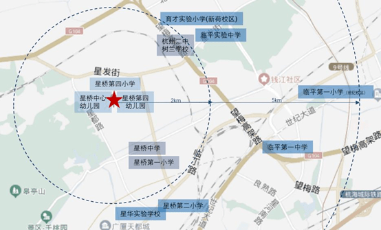 目送式教育 ,享15年黄金教育链【0距离书香润泽】星桥中心幼儿园、星桥第四幼儿园、星桥第四小学【2km文化熏陶】星桥中学、星桥第一小学、杭州二中树兰学校【5km人文氛围浓郁】星桥第二小学、育才实验小学(新荷校区)、临平区星华实验学校、临平实验中学、临平第一中学、临平第一小学(世纪校区)