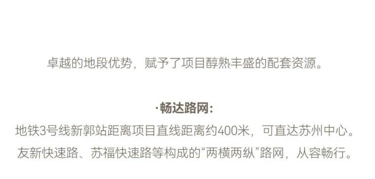 交通、商业、医疗便捷所享,家门口自带体育馆,项目配套齐全,生活氛围浓厚,拥有地铁3号线、友新快速路、苏福快速路等便捷交通,世茂生活广场、万达广场、龙湖天街、苏州市中医医院等医疗商圈环伺。
