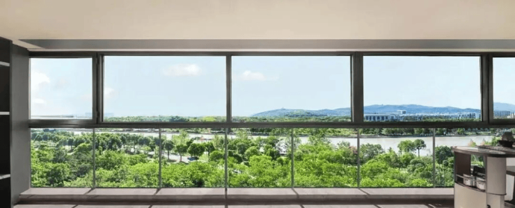 270°环幕视野将姑苏山水尽收眼底:推开落地窗,上方山层林尽染的秋色、石湖万顷烟波、运河鎏金曲线、社区中央园林,共同构成一幅流动的《姑苏繁华图》。