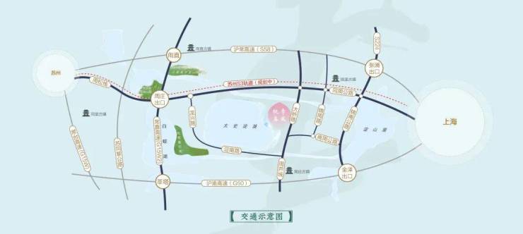 S3旅游型轨道交通(规划中)成为链接沪苏繁华的桥梁,沪苏湖铁路助力长三角一体化(建设中),崧泽高架连通苏同黎等多条快速路(主线已通车),多元交通布局,一路畅达心中向往的桃源墅居。