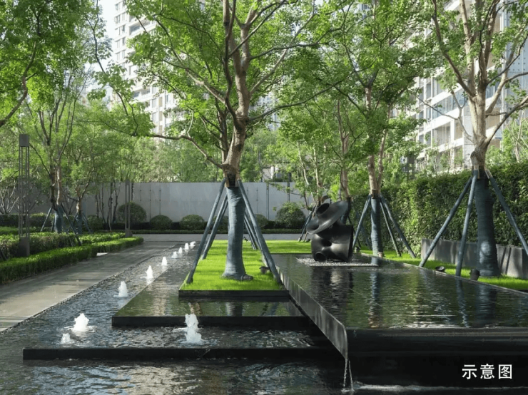 绿化率30%+ —— 法式园林设计,乔木+灌木+草坪层次分明