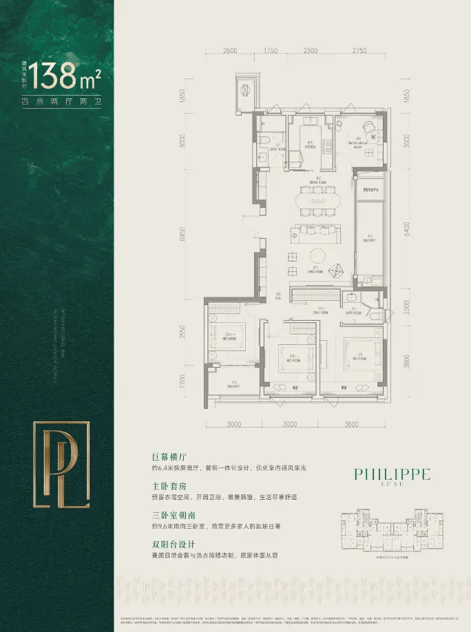 滨江滨悦翡丽轩在社区品质打造上也下足了功夫。项目仅推出138㎡和167㎡两种户型,均为四房设计,满足多口之家对空间与功能的高阶需求。138㎡户型为四室两厅两卫,边套设计,三面采光,得房率约84%,主卧带整墙衣柜系统,北侧设备阳台可改造为储物空间;167㎡户型为四室三卫(双套房),南向横厅设计,客厅开间达5.5米,主卧3.9米开间配皮革硬包背景墙,次卧亦可升级为独立套房,适合三代同堂或高端改善家庭。两种户型均采用两梯两户设计,类一梯一户格局,保障了私密性与归家尊崇感。
